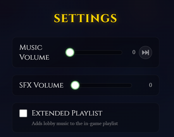 - Added an Extended Playlist setting that includes lobby music in the in-game playlist